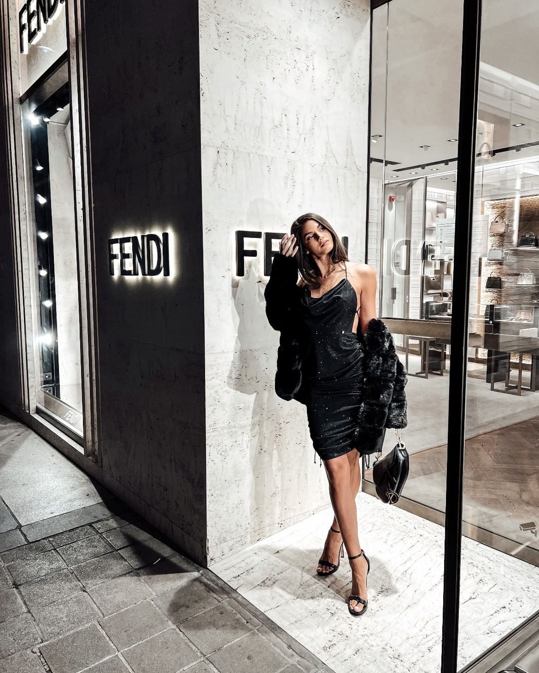 Abigail - fitted dress with a sparkle in a black shade with ruffles Instagram