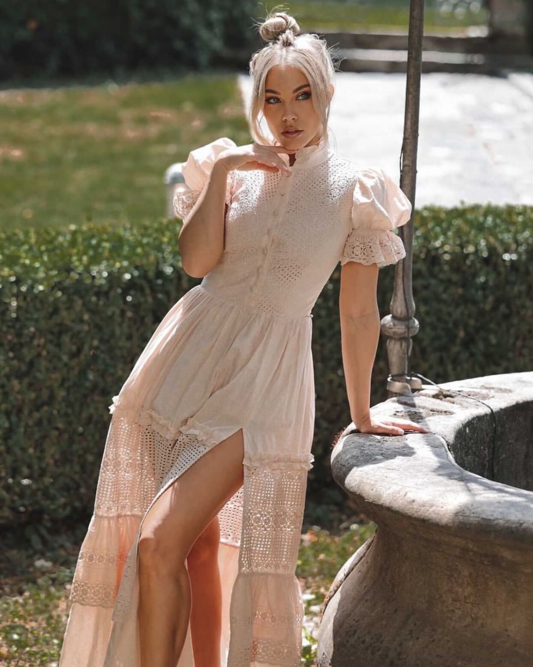 The dress is unique, even fairy-tale-like; I personally associate it with the Victorian era, of course on the plus side. Beautiful lace and perfectly arranged buffets. The length at 170 cm perfect. In fact, with a larger bust I advise you to take a size larger or choose another model.
