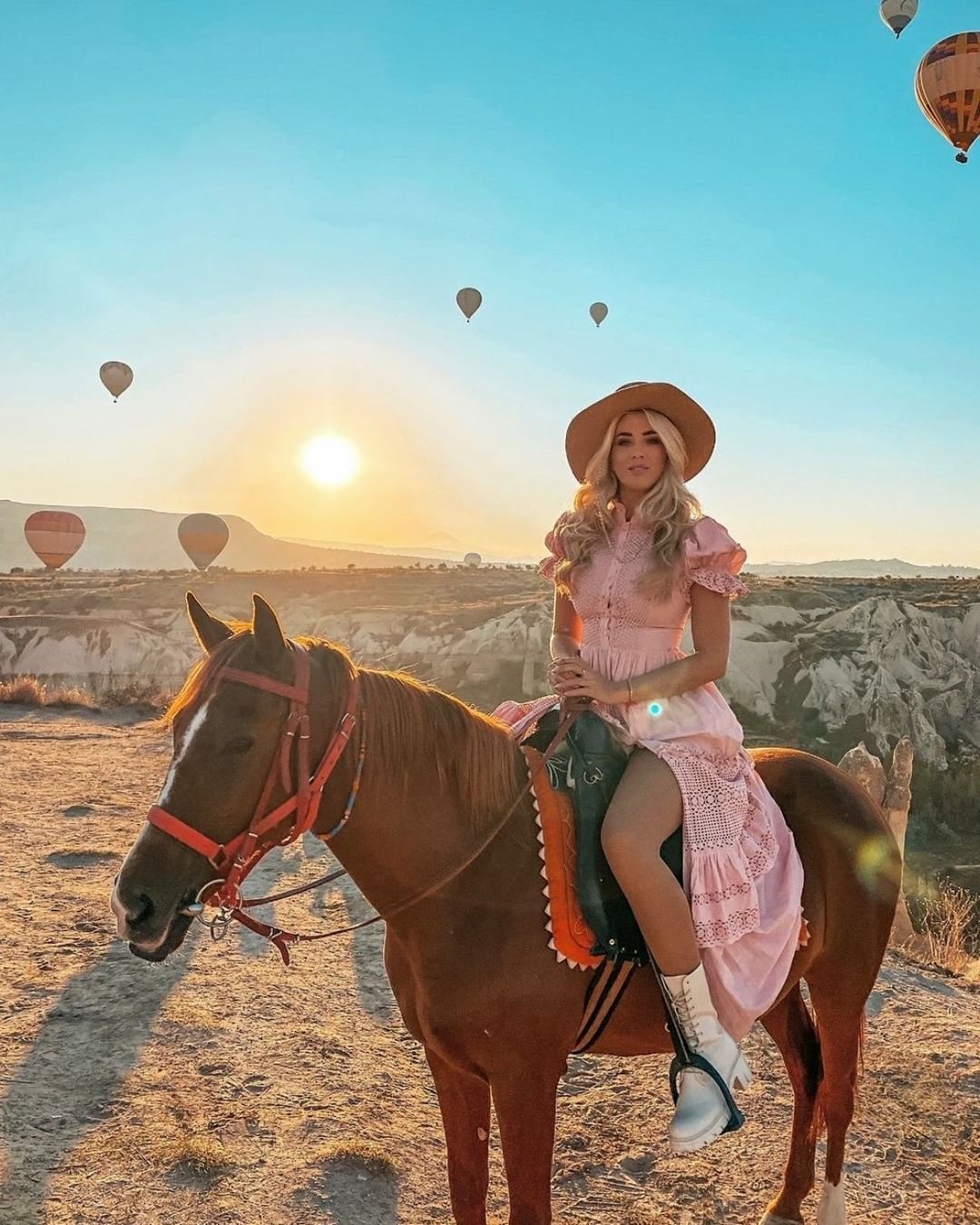 Girls this dress is really special. It emphasizes the slim waist and exposes the bust but covers it up. It lies like on the model even though I'm a size L. The feminine lace combined with the really fine quality of the cotton create a cohesion that allows you to wear the dress formally as well as the holiday version. Worth any price !