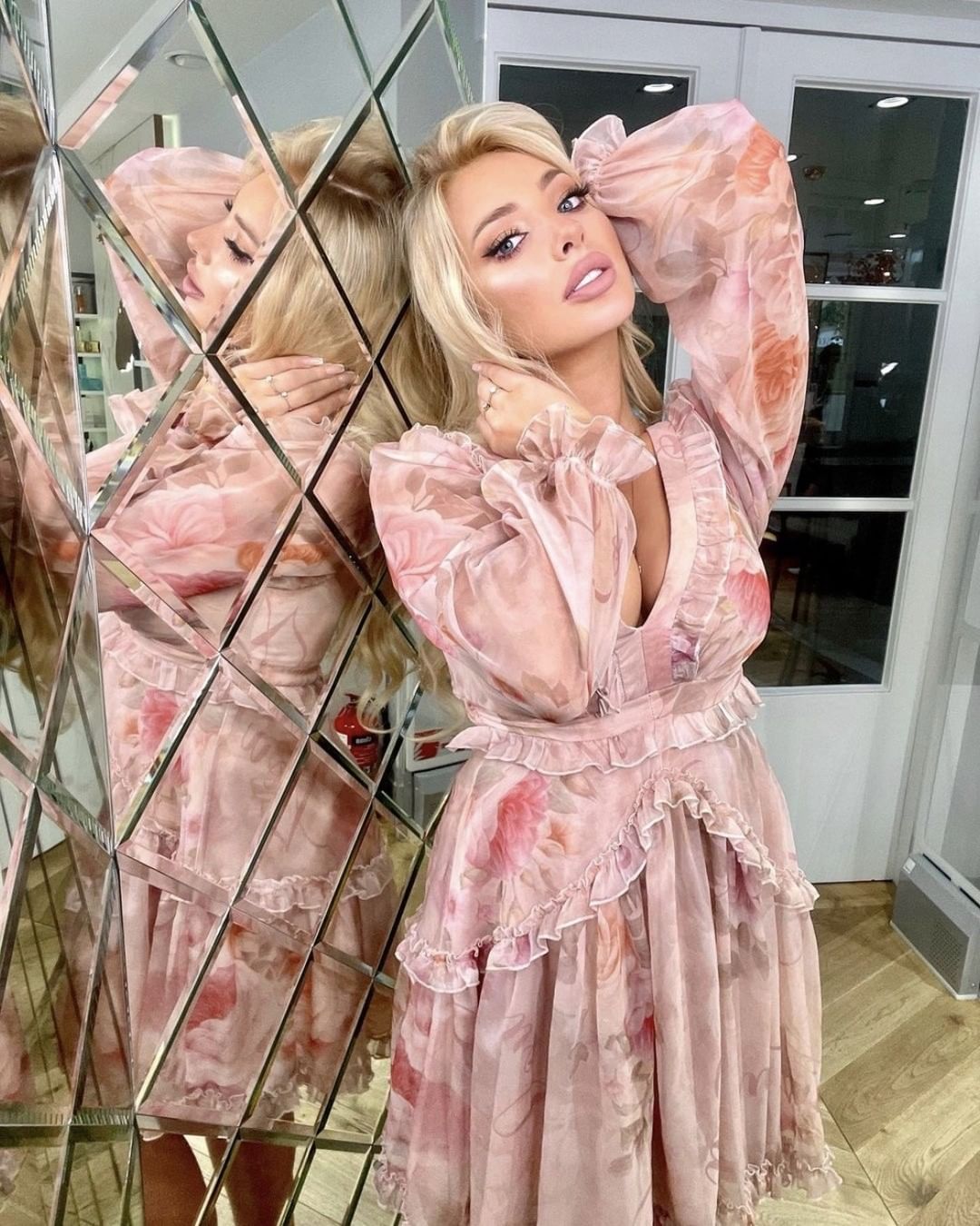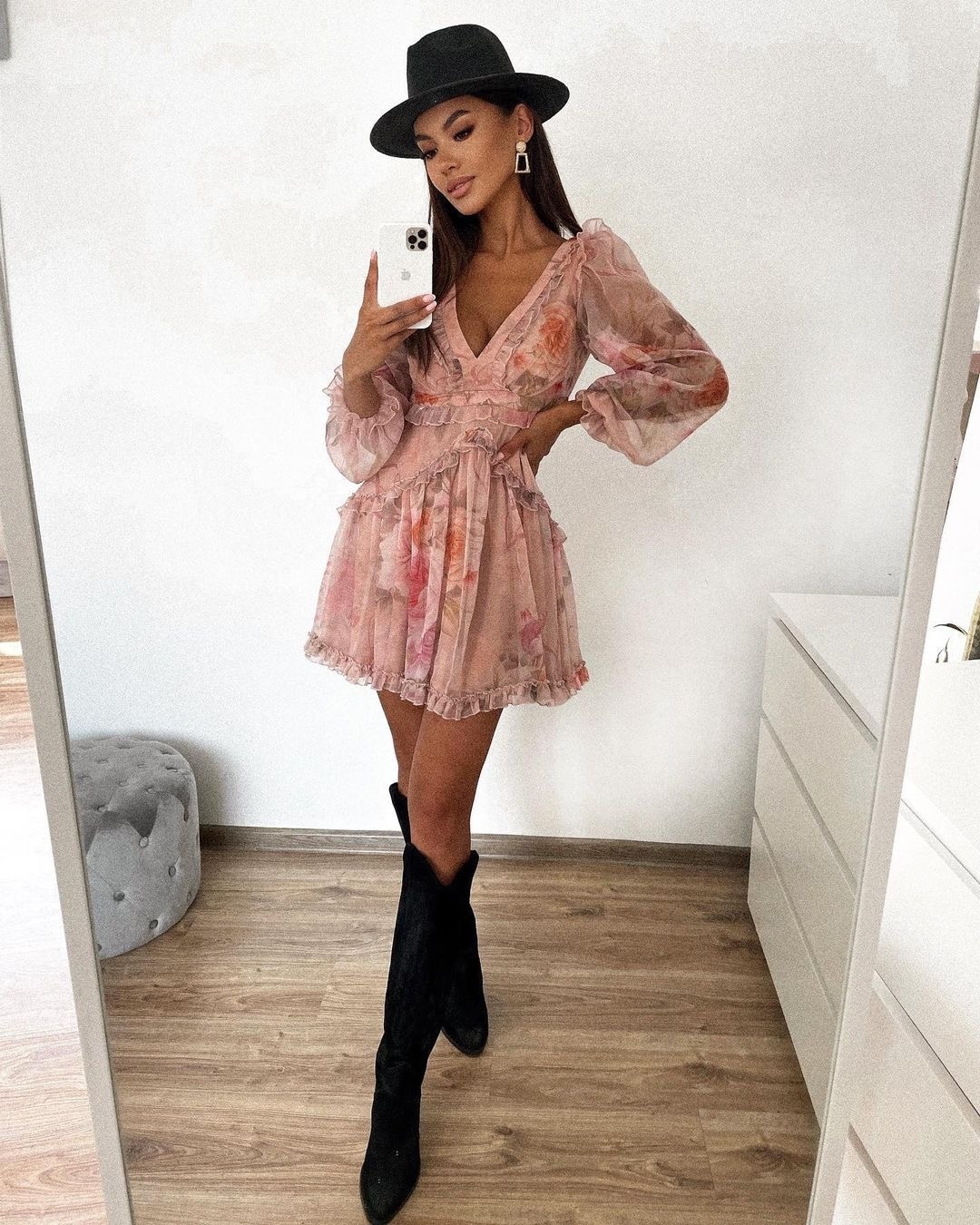 Beautiful dress, it is not as short as in the picture. The neckline is quite large, emphasizes the bust. I am very satisfied with the purchase.