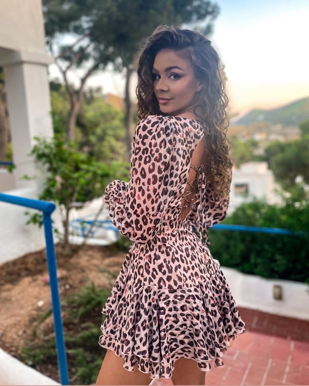 The dress is beautiful. Very impressive and complimentary. Comfortable to wear. Leopard pattern very on trend. In addition, it exposes the back beautifully.❤️ One of my favorites in the collection.