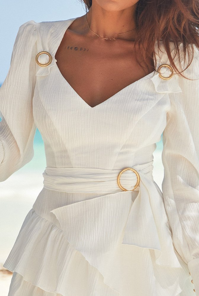 The dress is beautiful, elegant, cool material, and the shape of the neckline mastery. The gold details add a chic touch. The only thing I was not convinced about was the frills, but when I put a cream straight coat to it I immediately accepted them :-) I recommend :-)