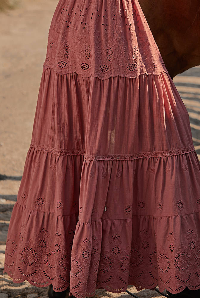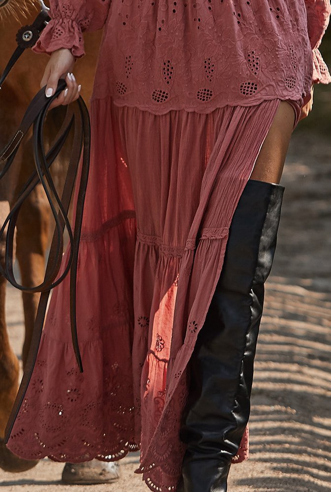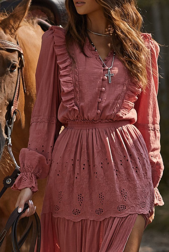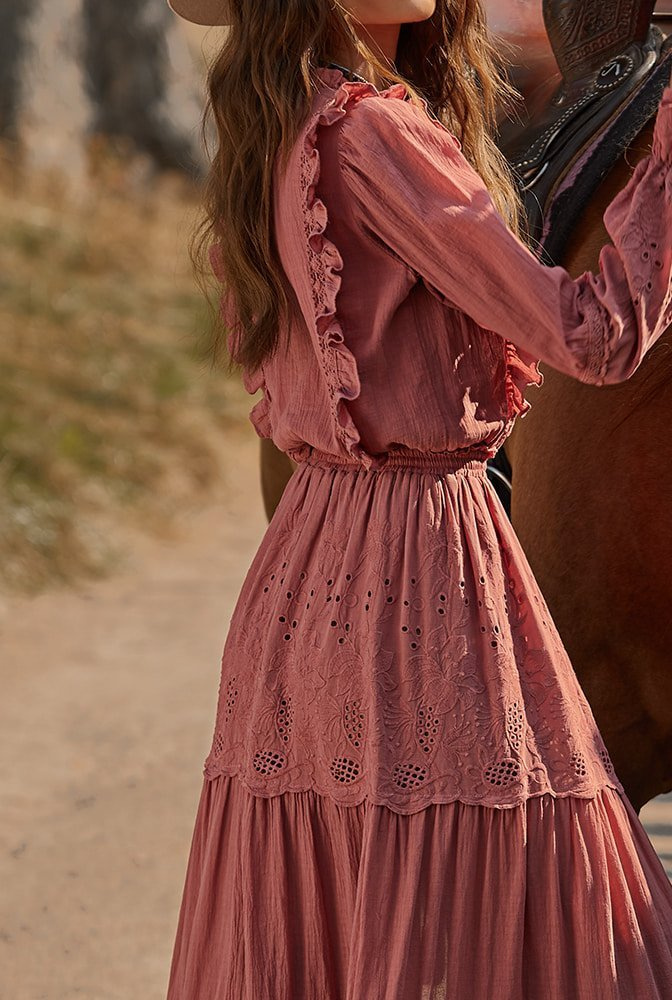 A large portion of natural embroidery in the spectacular marsala color. Length maxi slims the figure, giving it dignity. The whole material of Indiana dresses is extremely body and beauty friendly. The little things that we can notice here are invariably in boho dresses, frills, buttons and a cut for the leg. The unconventional combination of fabrics makes Lou dresses so original and beautiful. There is a lot to choose from, so take a look at the party dresses , cocktail party and evening .