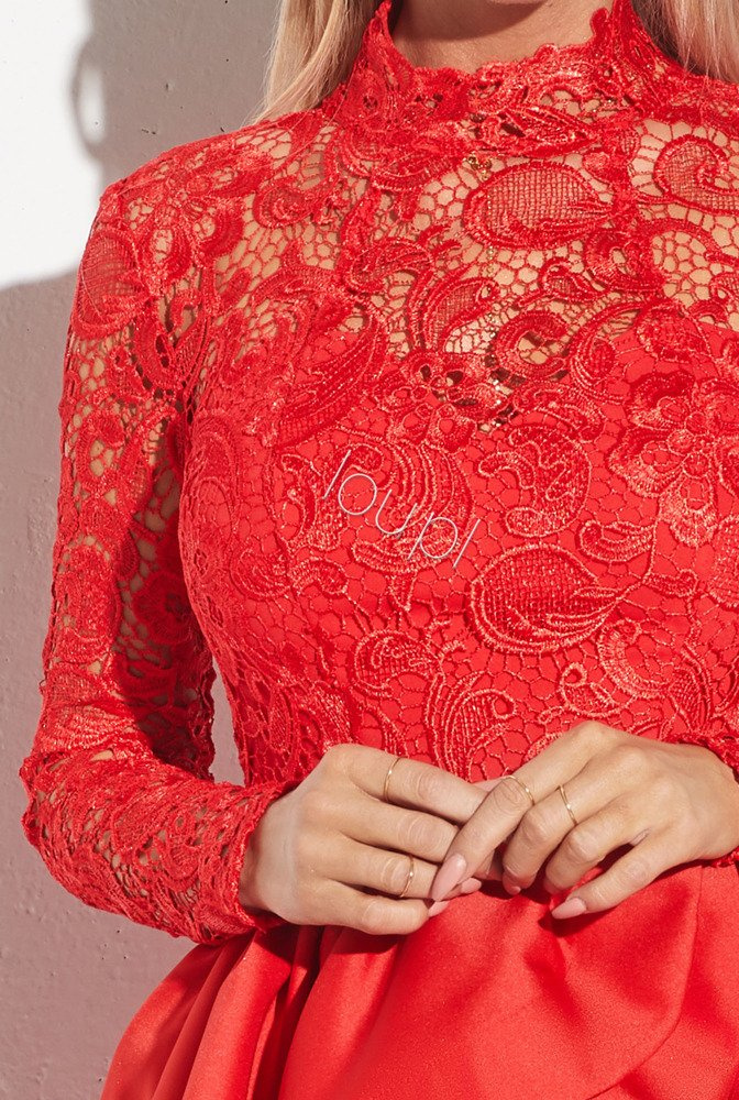 • Flared quipure dress with long sleeves. Bottom part of the dress stiffened with tulle. Back zipped with hidden zipper. Made & design in Poland.