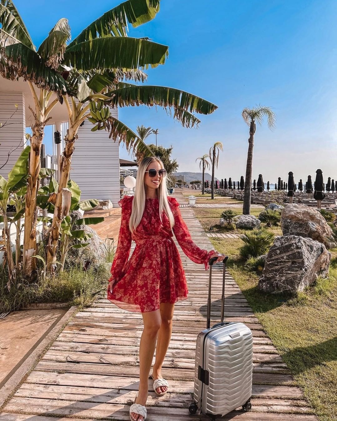 The dress is very nice, the size of the answer according to the description , it is not too short , I think it is a matter of taste .The color scheme is lovely . I was captivated by the ruffles .And the logoed fabric is wonderful.Here acct the company's logo is everywhere, I appreciate it.The dress is perfect for everyday,as well as for going out, such dresses are a hit in 10.Thank you for a good product Lou.I recommend .