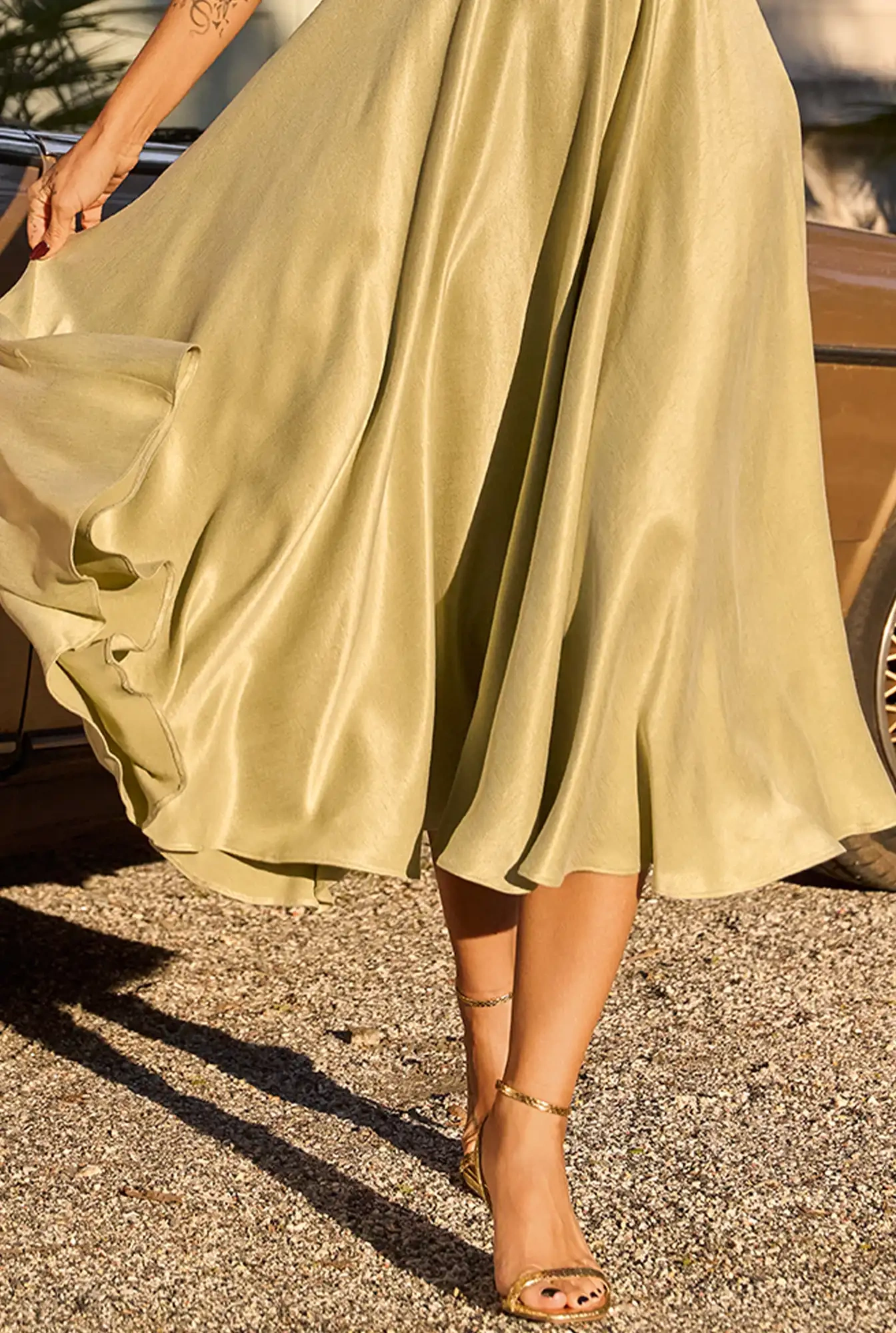The midi dress with a relaxed fit combines timeless elegance with everyday comfort. A subtle tie at the neck adds sophistication, while the back zipper ensures ease of wear. The dress is crafted from a high-quality blend of lyocell and viscose – fabrics valued for their softness, breathability, and luxurious feel. Perfect for both daytime meetings and evening outings. This dress is a go-to choice for women who appreciate style, quality, and functionality in one.