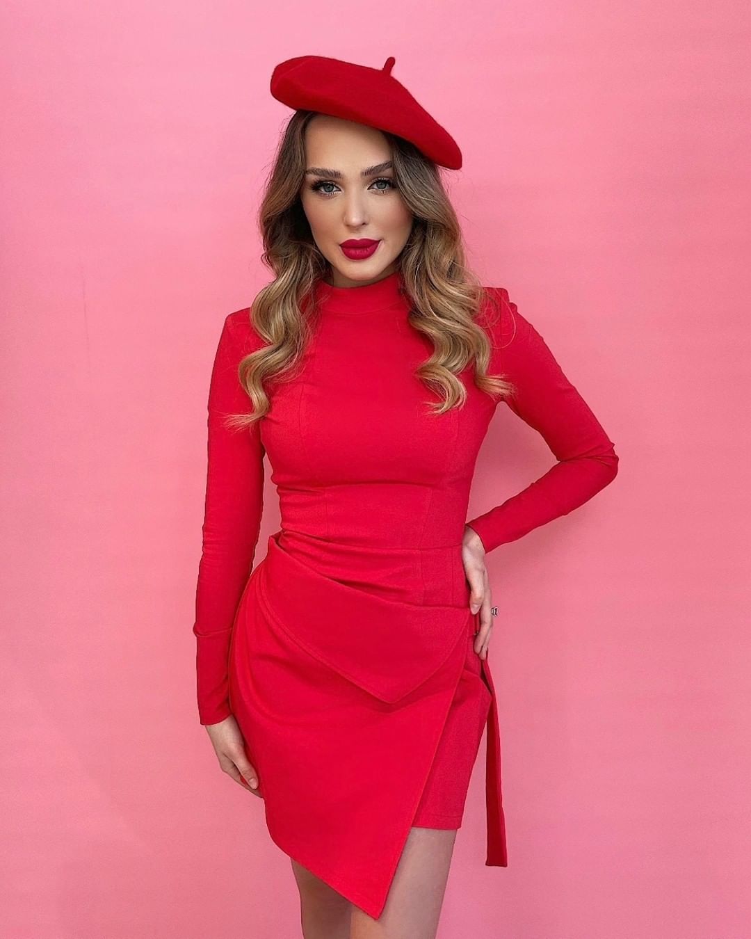 The dress is lovely, impressive. And that juicy red. It presents itself superbly. It fits beautifully to the figure. It can be dressed for different occasions. I recommend it to every woman. I am very pleased with the purchase