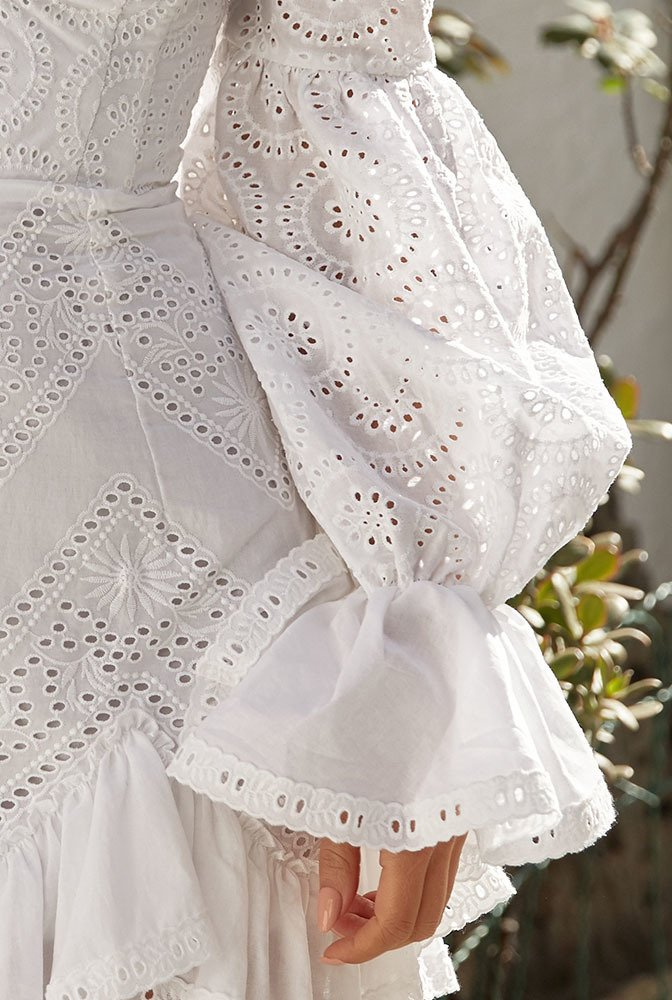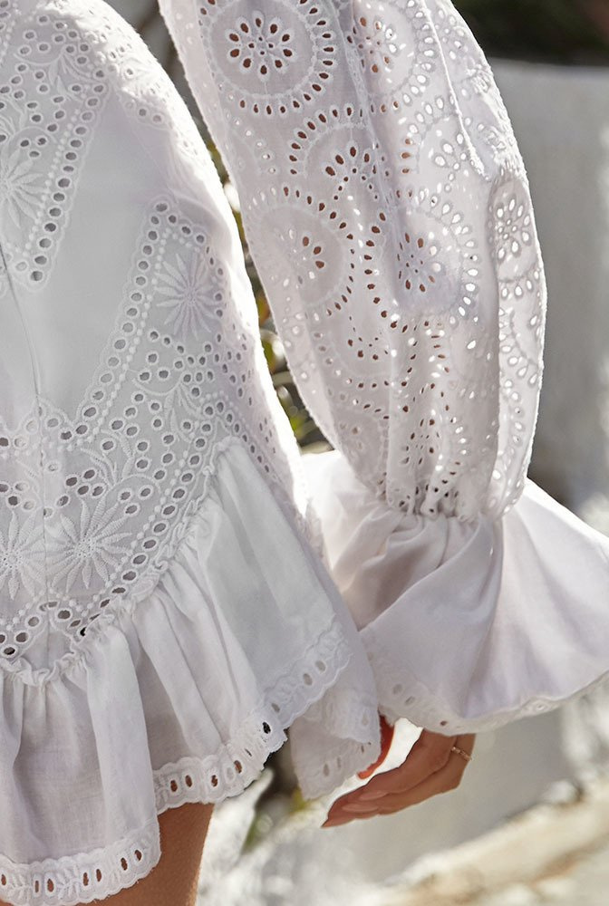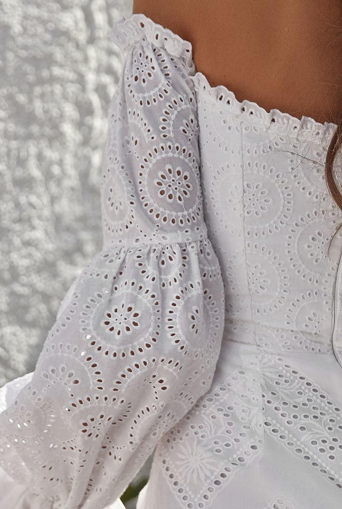 Lace, frills and balloon sleeves… this summer all this has its glory days! It’s also a perfect definition of the boho style loved by almost every woman. In order to meet the expectations of the LOU’s most demanding customers, we have decided to design the beautiful white Nea dress which on the summer days will make you look like a million dollars. This mini dress is finished with a fancy frill made of the embroidered fabric. The corset of the Nea boho dress is boned with underwires so that the off-the-shoulder project stays in the right place. Combine this beautiful dress with flat shoes, heeled sandals or elegant high heels. Experience how great you can look in the summer Nea boho dress by LOU!