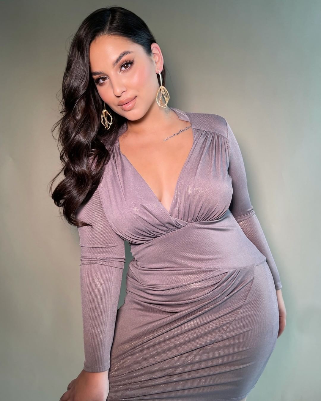 The dress emphasizes the figure and has an unusual color. It shimmers wonderfully and is comfortable. Perfect for going out as well as for everyday wear. I recommend ❤️